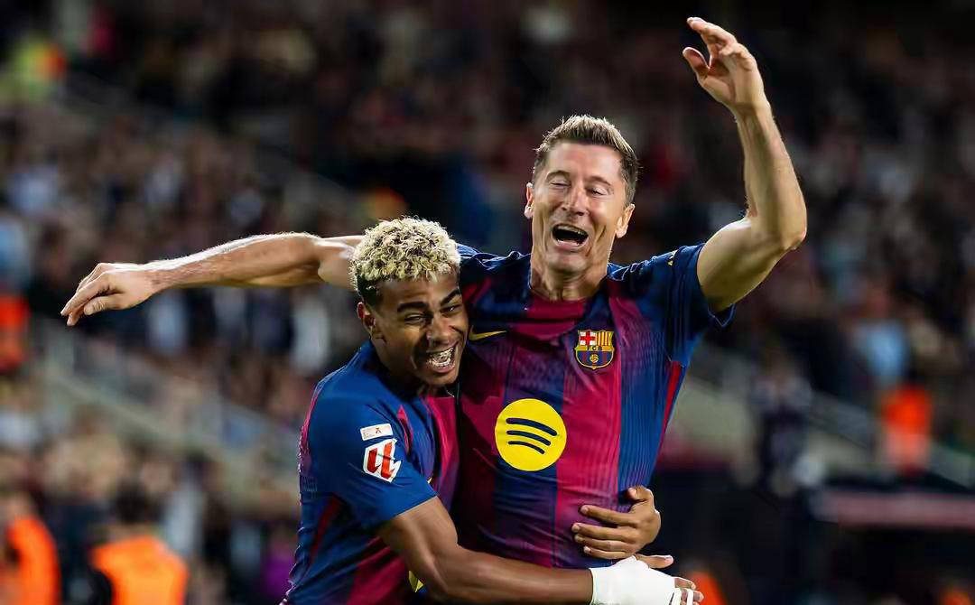 巴萨2-1力克皇家社会,莱万里程碑破门助球队领跑西甲